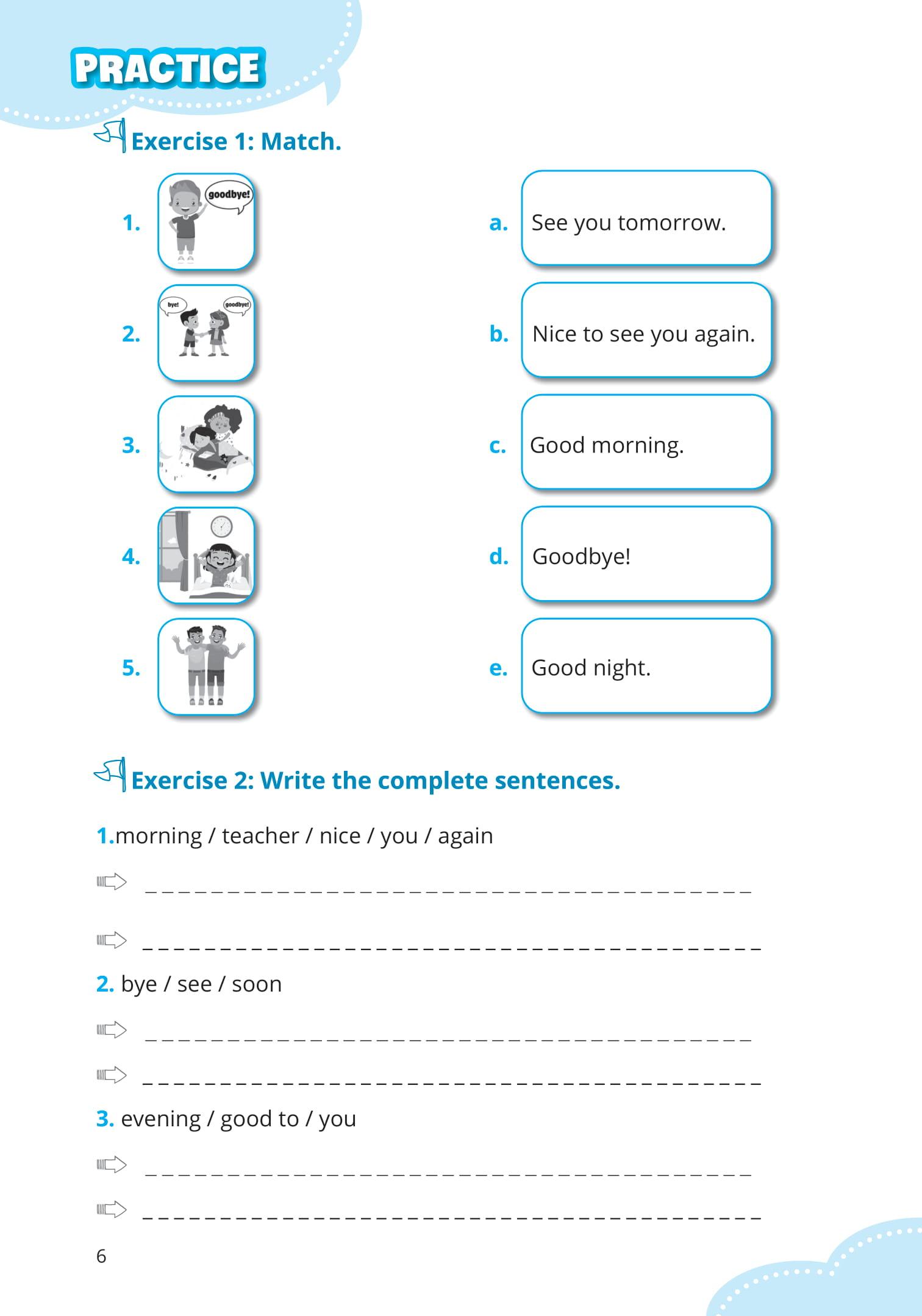 - “Học đi đôi với hành” – Bài tập thực hành đa dạng Để giúp các con hiểu sâu – nhớ lâu kiến thức và áp dụng được vào thực tế, các dạng bài tập thực hành rất phong phú: Bài tập nối (Match), điền từ vào chỗ trống, sửa lỗi sai, hoàn thành câu, dịch nghĩa…