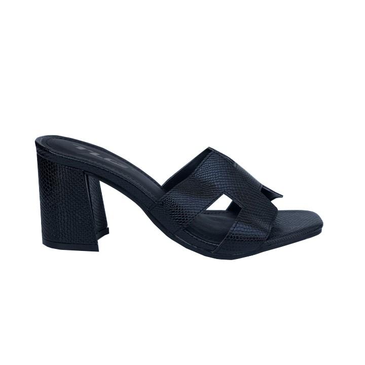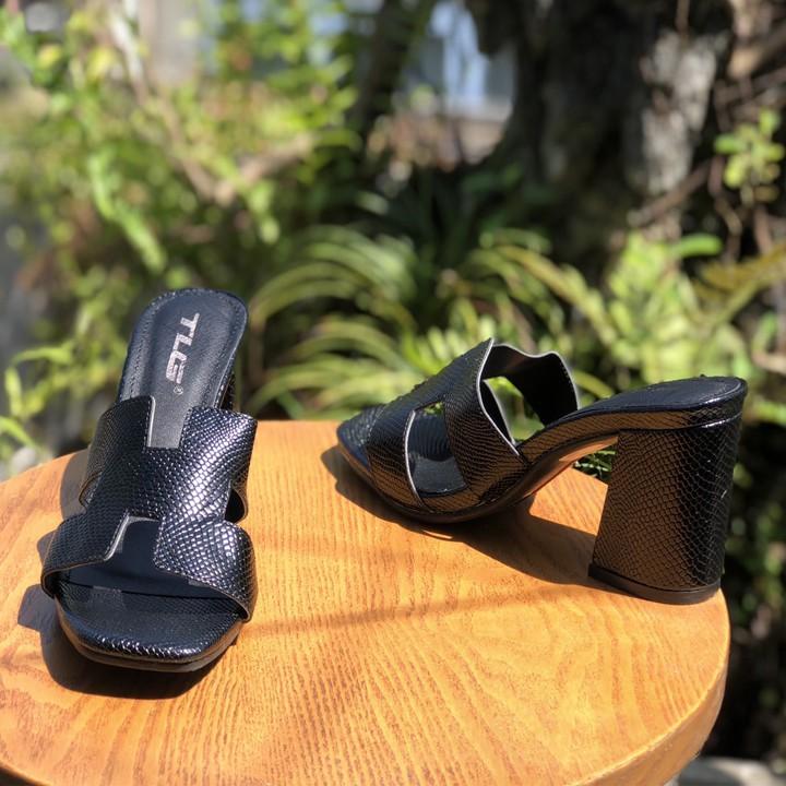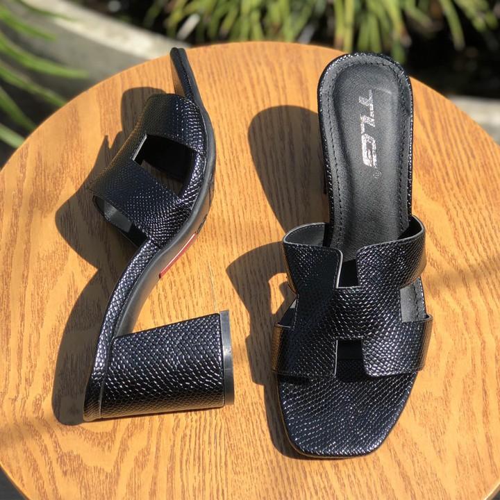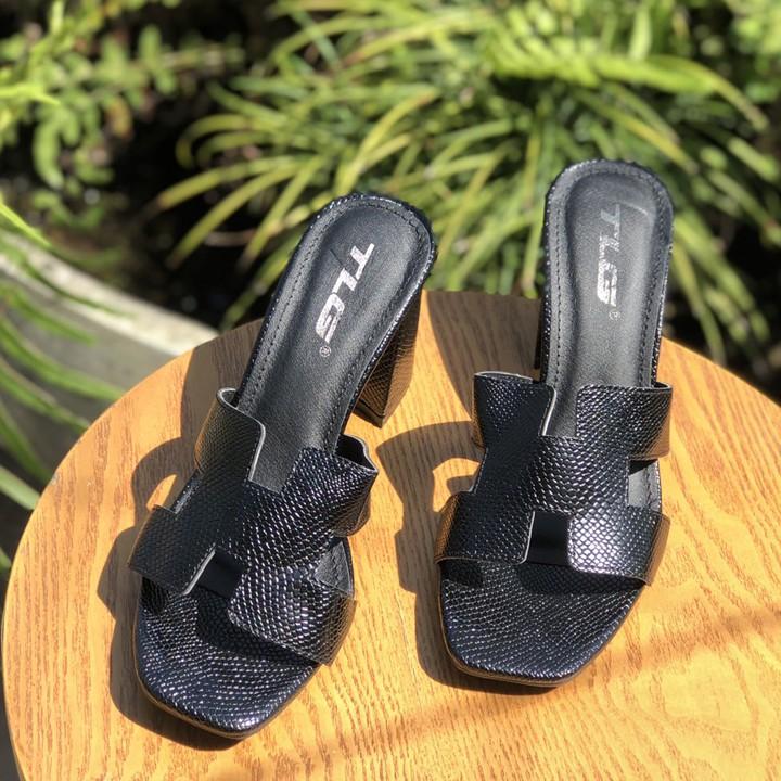 - Dép nữ cao gót quai ngang một bản TRường Hải màu đen gót vuông 8cm da mềm DN139 thiết kế với kiểu dáng ôm chân, thon gọn, thoải mái di chuyển mà không lo