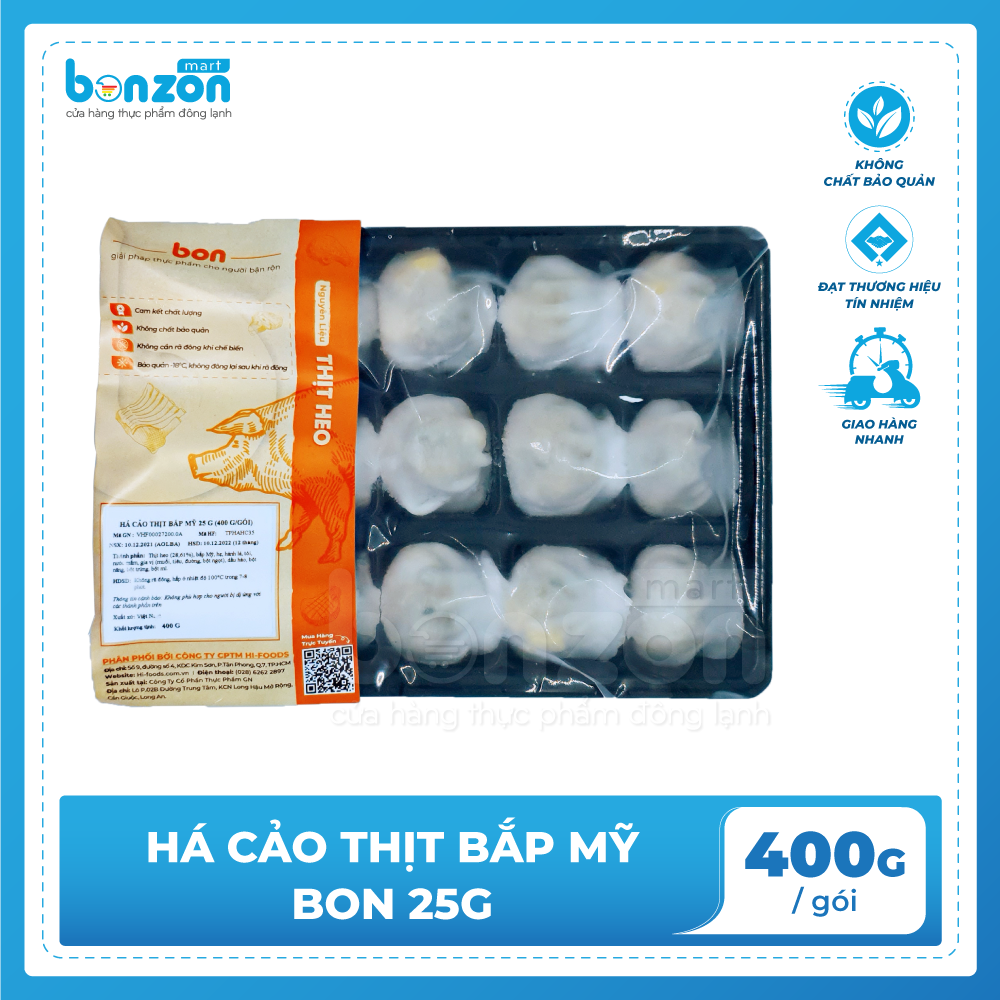 Mua tại TiktokVới sản phẩm tươi sống, trọng lượng thực tế có thể chênh lệch khoảng 10%. ĐỊNH LƯỢNG: 400g/gói THÀNH PHẦN: Thịt heo (28,61%), bắp Mỹ, hẹ, hành lá, tỏi,nước mắm, gia vị (muối, tiêu, đường, bột ngọt), dầu hào, bột năng, bột trứng, bột mì MÔ TẢ SẢN PHẨM: - Vỏ áo ngoài màu trắng trong, thấy được nhân màu đặc trưng của thịt heo, màu vàng của bắp mỹ tươi - Vỏ bánh mỏng, mềm mịn dẻo dai với phần nhân từ thịt heo, bắp mỹ tươi - Ăn kèm với nước chấm Dimsum CÁCH CHẾ BIẾN: - Không rã đông - Hấp ở nhiệt độ 100 độ C trong thời gian 8 - 9 phút BẢO QUẢN: Bảo quản -18oC, không đông lại sau khi rã đông HSD: 18 tháng