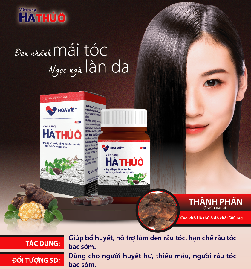 - THÀNH PHẦN: Mỗi viên nang cứng chứa: Cao khô Hà thủ ô đỏ chế 500 mg ( được chiết xuất từ 2g dược liệu Hà thủ ô đỏ chế )