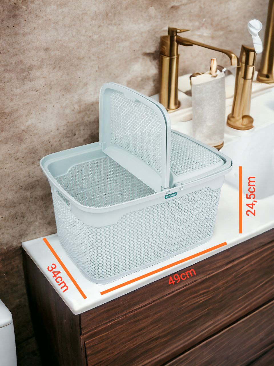 - Nhựa PP nguyên sinh không chỉ bền bỉ mà còn an toàn cho sức khỏe, giúp bạn yên tâm khi sử dụng để đựng đồ sơ sinh. - Thiết kế quai xách chắc chắn ở giữa tạo sự cân đối khi di chuyển, giúp bạn dễ dàng mang theo đồ đạc mà không lo bị lệch. - Nắp đậy tiện lợi giúp bảo quản đồ đạc ngăn nắp, không bị rơi rớt, giữ cho không gian luôn gọn gàng. - Làn nắp Hokori đa năng không chỉ phù hợp để đựng đồ sơ sinh mà còn lý tưởng để lưu trữ nhiều vật dụng gia đình khác. Hướng dẫn sử dụng