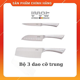Bộ 3 dao cỡ trung : 01 Dao gọt 5" đa năng iMat I 01 Dao Santoku cỡ nhỏ iMat: dài 24 cm (cán) I 01 Dao băm chặt, thái bản dày iMat: dài 32.4cm (cán)