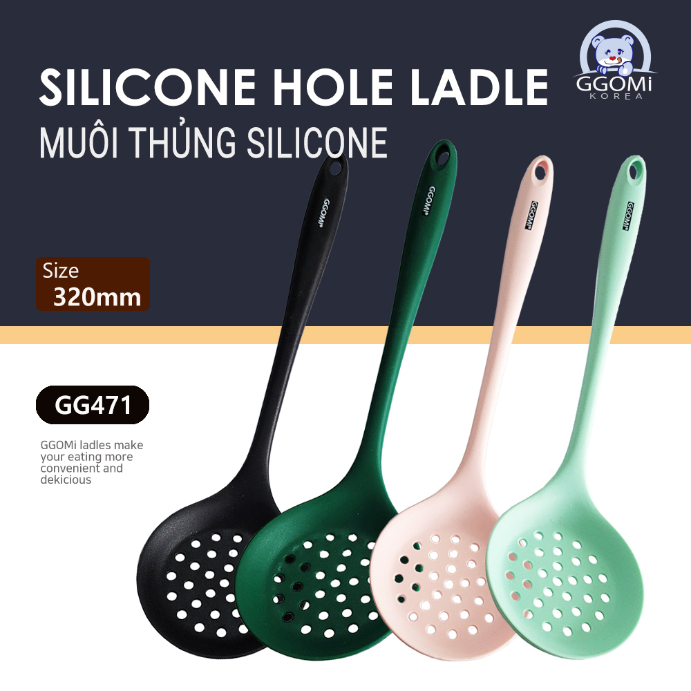 Muôi/Vá/Muỗng thủng múc đồ ăn silicone Hàn Quốc GG471 có tay cầm bằng thiết kế cấu trúc đặc silicone chịu nhiệt độ cao ( từ -40oC tới 250oC ), tiện lợi sử dụng được cho người thuận cả tay trái lẫn tay phải, dụng cụ sử dụng bằng silicone chịu nhiệt cao cấp an toàn với sức khỏe của con người khi sử dụng