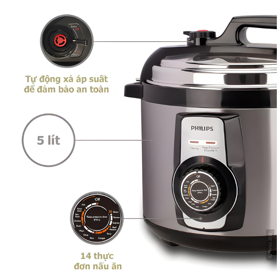 Nồi áp suất điện Philips HD2103 Hàng chính hãng ( Phiên bản tiếng việt) dung tích 5L