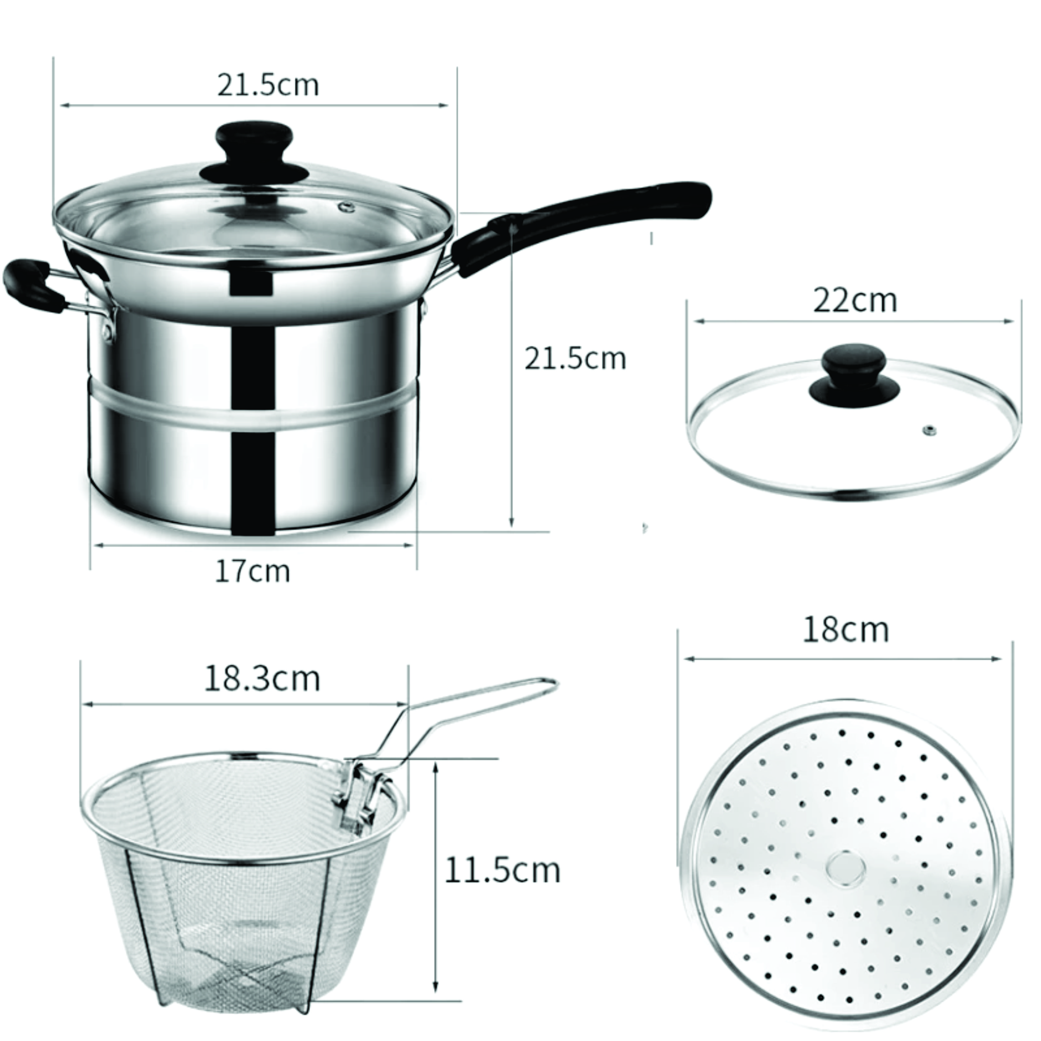 Nồi chiên ngập dầu kết hợp hấp đa năng, có xửng hấp và khay chiên, nồi hấp lòng inox 3 lớp chống ăn mòn đa năng MÔ TẢ SẢN PHẨM- Nồi được làm từ thép k gỉ sáng bóng, chắc chắn, an toàn khi sử dụng. Đ...
