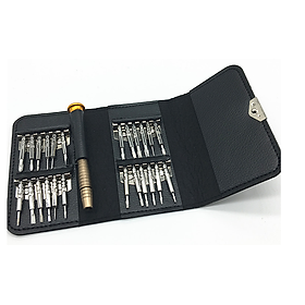 Với bộ tua vít 25 in 1 này đảm bảo bạn sẽ không còn phải lo lắng sửa chữa đồ điện tử khi gặp phải những con ốc, vít siêu nhỏ. Bộ tô vít ví da25in1mang lại cho bạn nhiều tiện lợi khi sửa chữa máy móc hay các thiết bị điện tử cỡ nhỏ trong gia đình. Bộ tua vít với đầu tua vít được làm từ chất liệu thép không gỉ nên rất bền chắc. Sản phẩm có nhiều kiểu đầu vít khác nhau như: đầu dẹt, tam giác, lục giác, 3 cạnh, 4 cạnh, 5 cạnh và 6 cạnh, mỗi dạng đều có đủ các cỡ từ lớn đến nhỏ nên rất dễ dàng cho bạn trong việc sửa chữa đồ đạc.