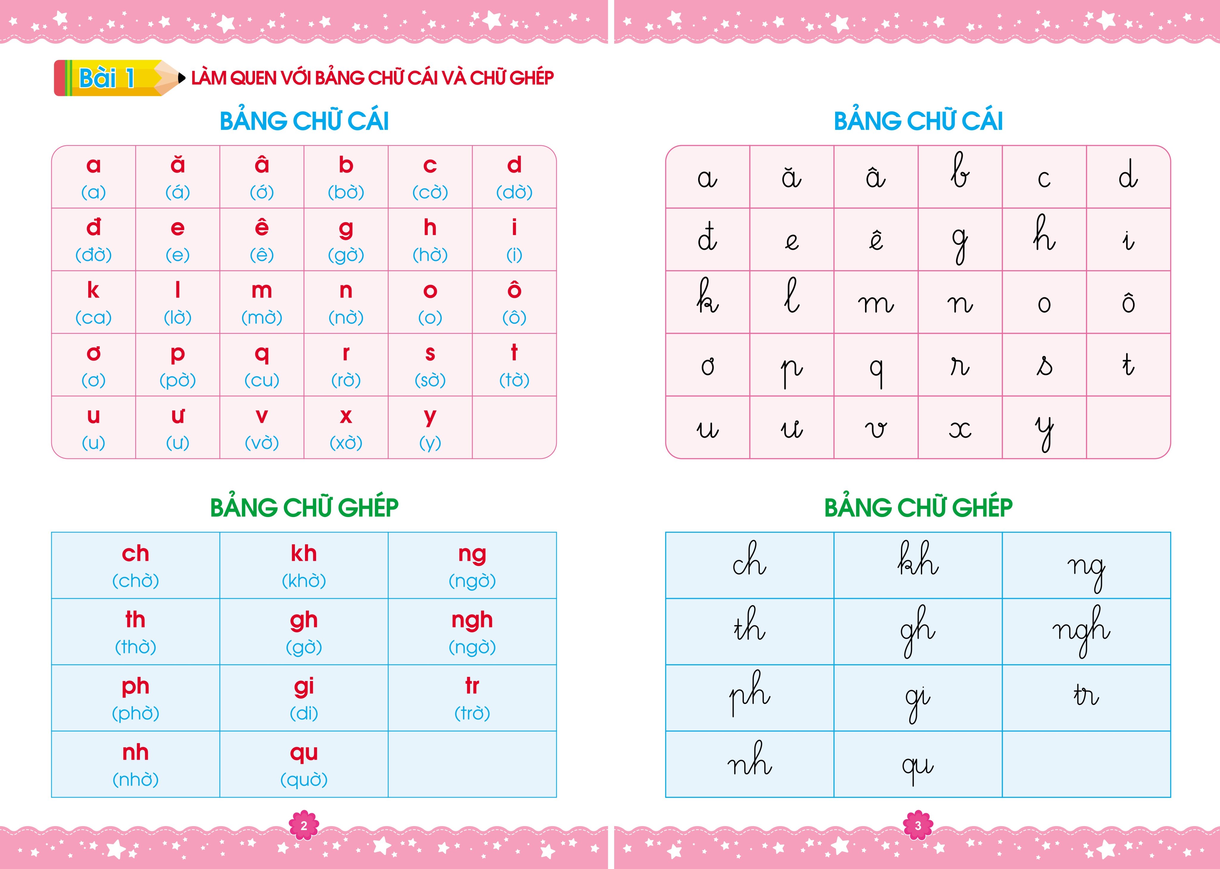 • Quyển 2: Tập viết chữ cái và chữ ghép theo mẫu chữ có sẵn.