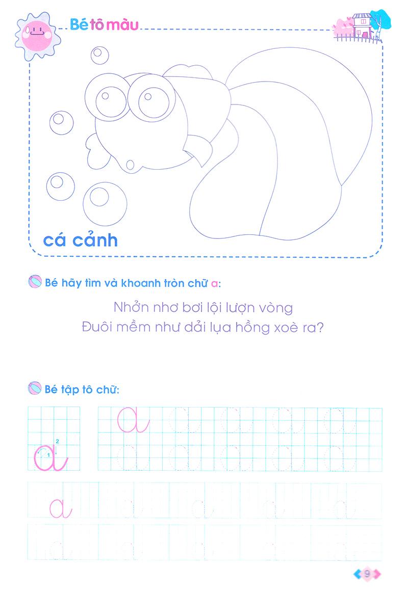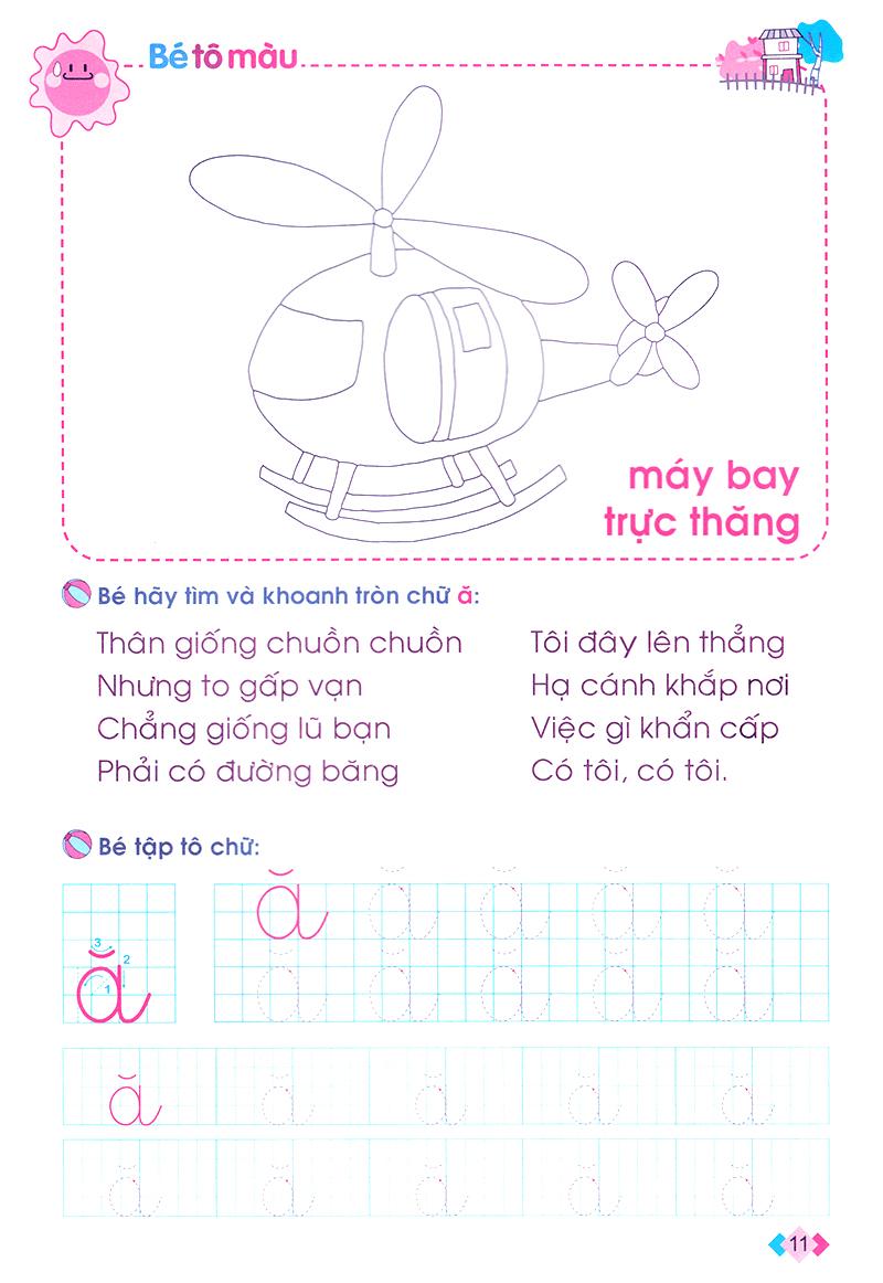 Vở Bé chuẩn bị Học đọc và học viết gồm các dạng bài tập rèn luyện lý thú, hữu ích: khoanh tròn chữ cái trong bài thơ, tô chữ, đọc tên hình và nối chữ.