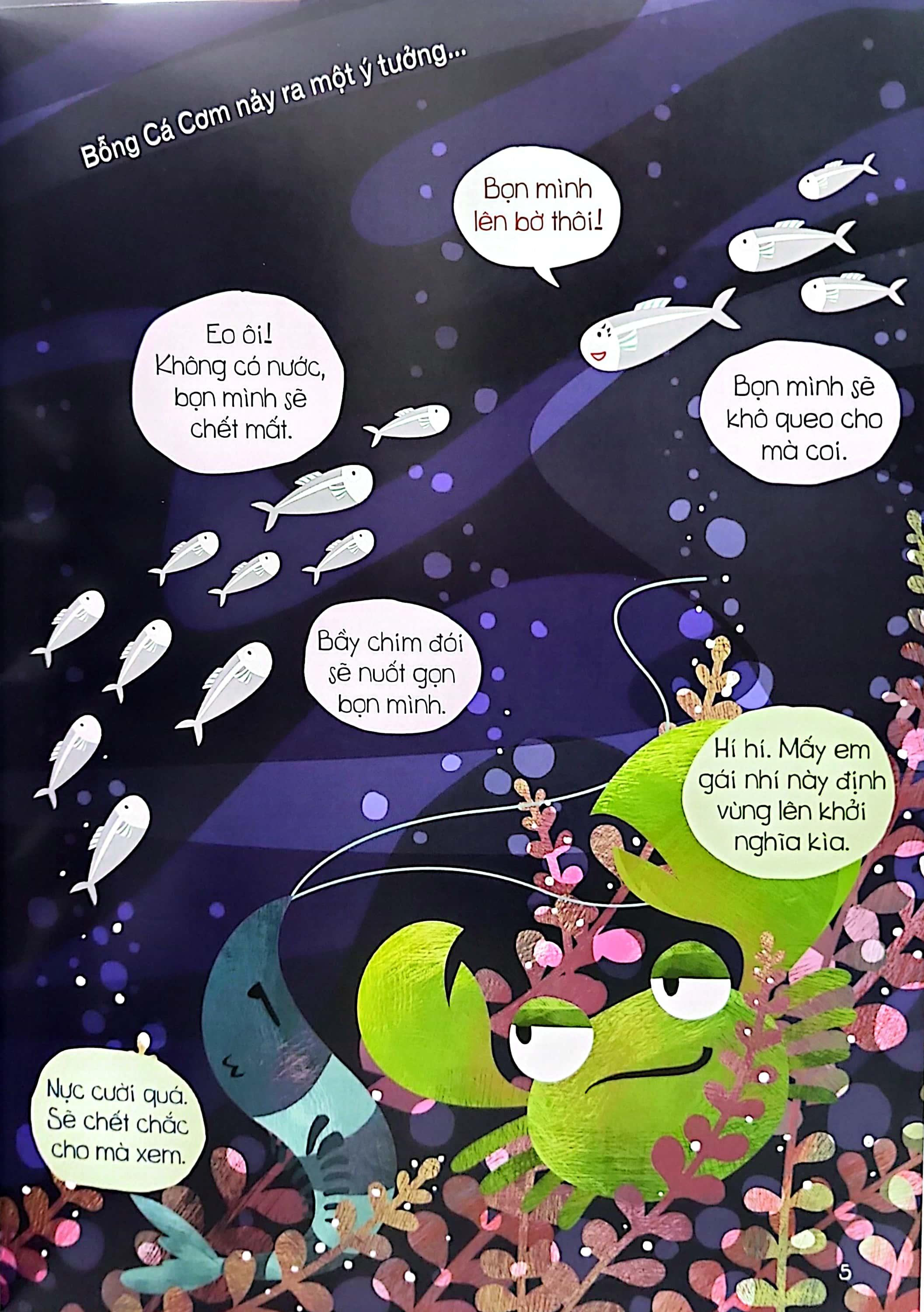 Mua tại TiktokỞ Vương Quốc CÁ, vì bé nhỏ nên Cá Cơm hay bị các loài cá khác trêu chọc và bắt nạt. Cá Cơm buồn lắm. Một ngày nọ, cô bé tập hợp gia đình m.ình lại và thông báo một quyết định táo bạo: Cá Cơm sẽ lên bờ .