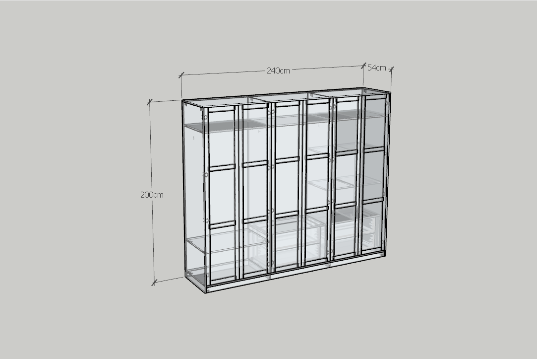 Kích thước sản phẩm:  240cm x 54cm x 200cm ( Ngang x sâu x cao )