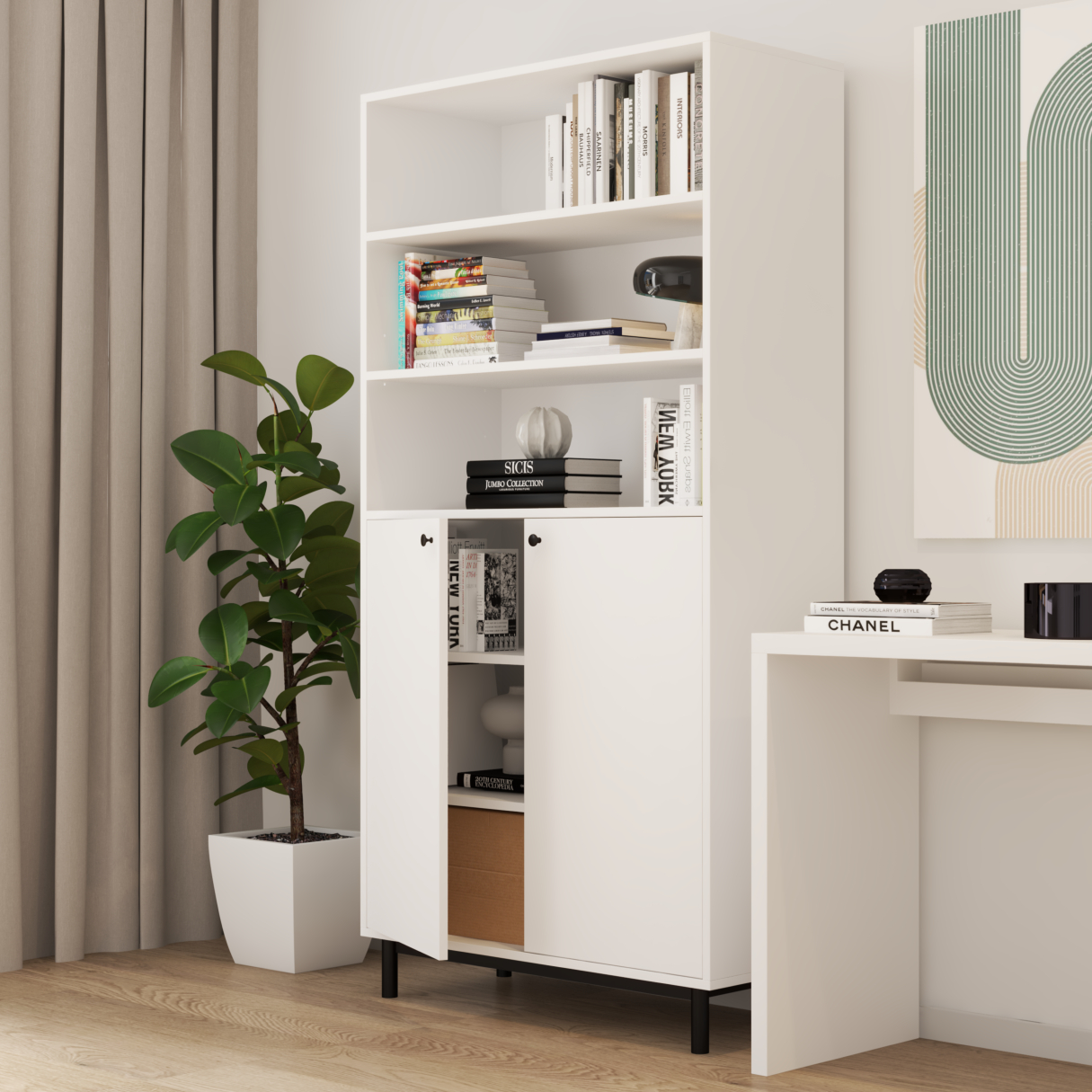 ✨[Happy Home Furniture] CATY , Kệ sách 6 tầng 2 cửa mở - chân sắt , 90cm x 40cm x 180cm (DxRxC), KSA_016