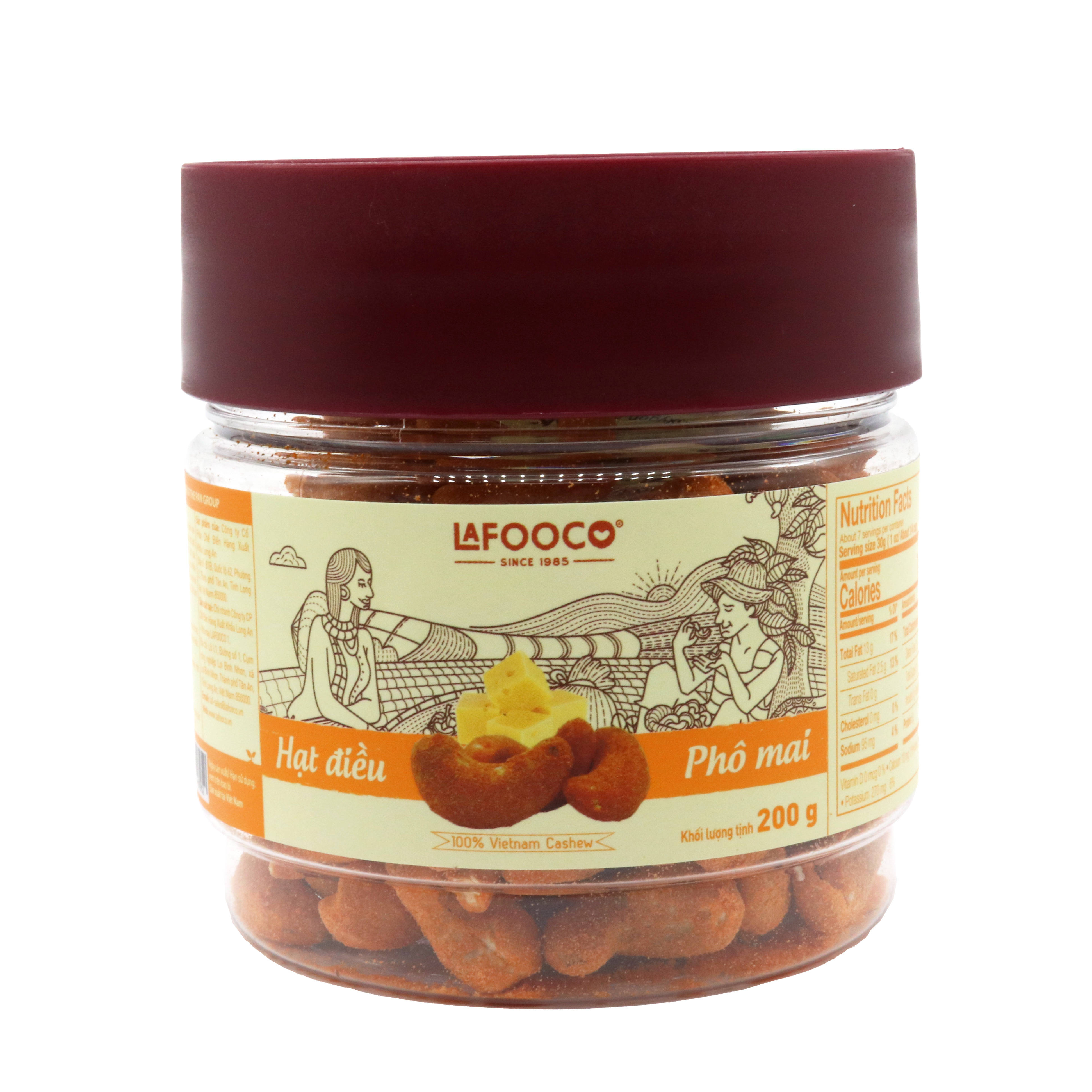 Vị giòn tan của hạt điều Việt Nam kết hợp hoàn hảo với vị béo mặn nhẹ và hương vị phô mai thơm nồng.