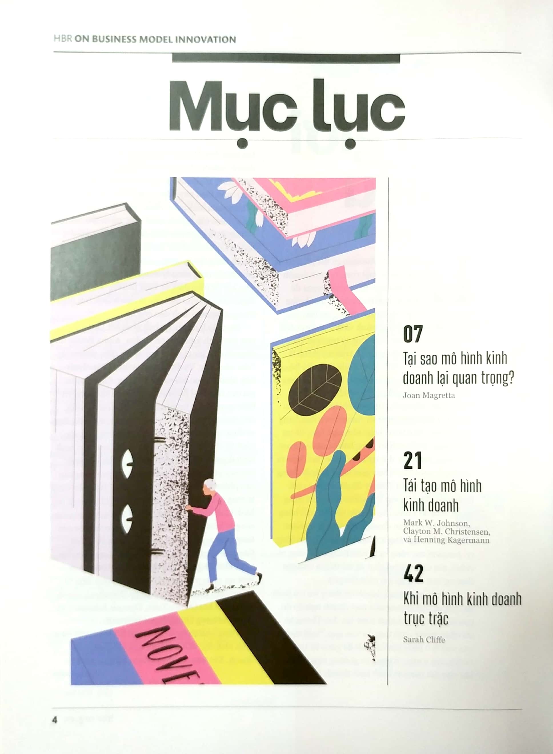 Ấn phẩm bao gồm 11 bài viết xuất sắc nhất về đổi mới mô hình kinh doanh để giúp bạn tiếp cận khách hàng mới và đi trước đối thủ. Bạn sẽ được truyền cảm hứng để: đánh giá xem mô hình kinh doanh cốt lõi của mình đang “khỏe mạnh” hay suy yếu; đẩy lùi các đối thủ mới gia nhập thị trường chuyên cung cấp sản phẩm miễn phí và giảm giá sâu; thúc đẩy tăng trưởng mạnh mẽ bằng cách bổ sung thêm một mô hình kinh doanh thứ hai; học hỏi bí quyết của các công ty khởi nghiệp tinh gọn; phát triển một nền tảng xoay xung quanh các sản phẩm chủ chốt; biến đổi mới mô hình kinh doanh trở thành một nguyên tắc được áp dụng thường xuyên trong công ty.