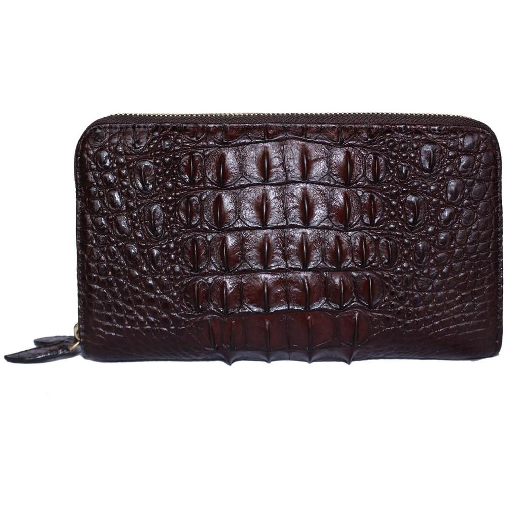 Ví/Bóp nữ da bò Huy Hoàng vân cá sấu nhiều ngăn màu nâu 3134