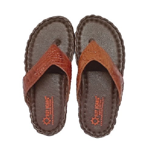 - Dép nam Huy Hoàng được làm từ chất liệu da cá sấu thật 100% nên càng sử dụng lâu bề mặt da sẽ càng bóng đẹp tự nhiên. Da cá sấu mềm mại sẽ