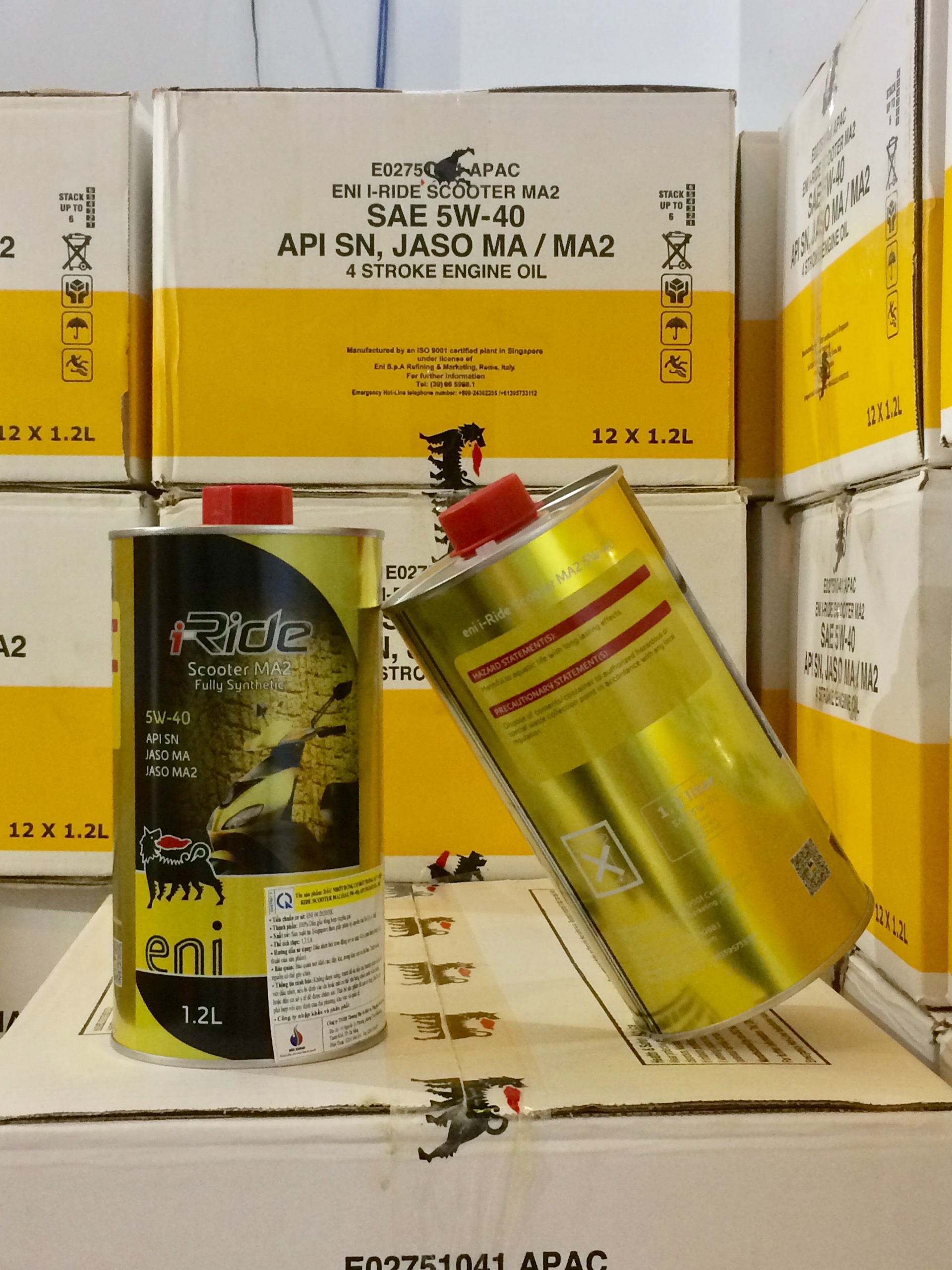 ENI I-RIDE SCOOTER MA2 5W-40 là dầu nhớt bôi trơn tích hợp sự đổi mới trong công nghệ pha chế từ nghiên cứu của các chuyên gia Eni trong lĩnh vực dầu nhờn). Tính chất . Cấp nhớt: JASO MA, MA2 | API SN . Phân loại: Nhớt tổng hợp toàn phần (Fully Synthetic) Đặc tính . Khả năng bôi trơn vượt trội, chống mài mòn hiệu quả. . Khả năng làm sạch động cơ, không để lại cặn bẩn trong khoang máy. . Khả năng chịu được nhiệt độ cao mà không làm giảm công suất. . Khả năng tăng tốc cực nhạy, đáp ứng mọi tình huống. . Chống oxy hóa cao, đảm bảo tuổi thọ của động cơ. . Tiết kiệm nhiên liệu và bảo vệ môi trường. Ứng dụng . Sử dụng được cho hầu hết các loại xe: xe ga và xe số động cơ 4 thì. . Khuyến khích cho các dòng xe có hiệu suất cao. . Được đề xuất sử dụng cho hãng xe Vespa của Piaggio.