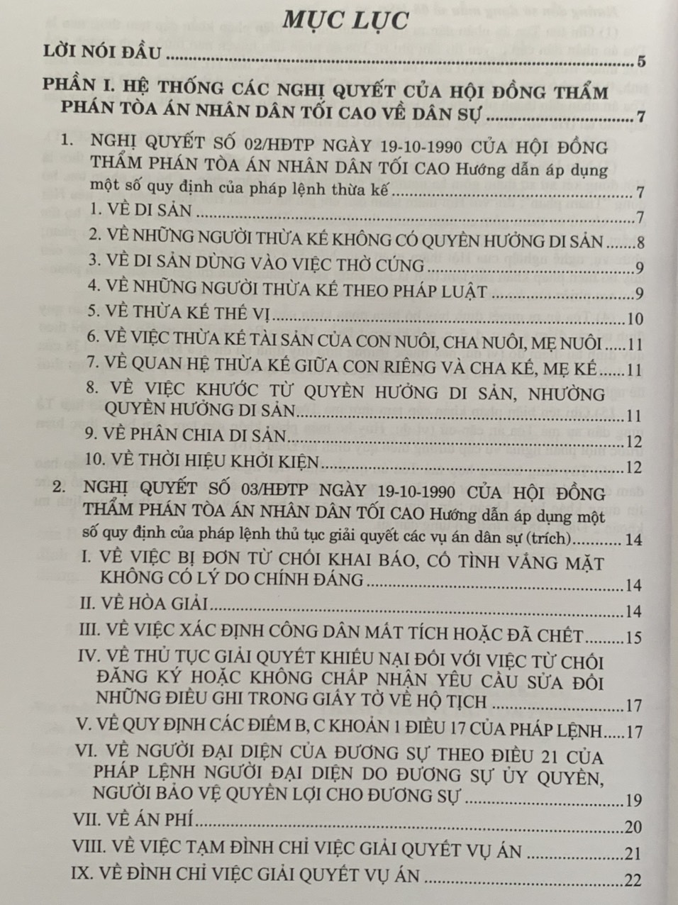 HỆ THỐNG CÁC NGHỊ QUYẾT CỦA HỘI ĐỒNG THẨM PHÁN TÒA ÁN NHÂN DÂN TỐI CAO VỀ DÂN SỰ VÀ TỐ TỤNG DÂN SỰ TỪ NĂM 1990 ĐẾN 2023 (Dành cho Thẩm phán, Thẩm tra viên, Hội thẩm, Kiểm soát viên, Luật sư và các học viên tư pháp )