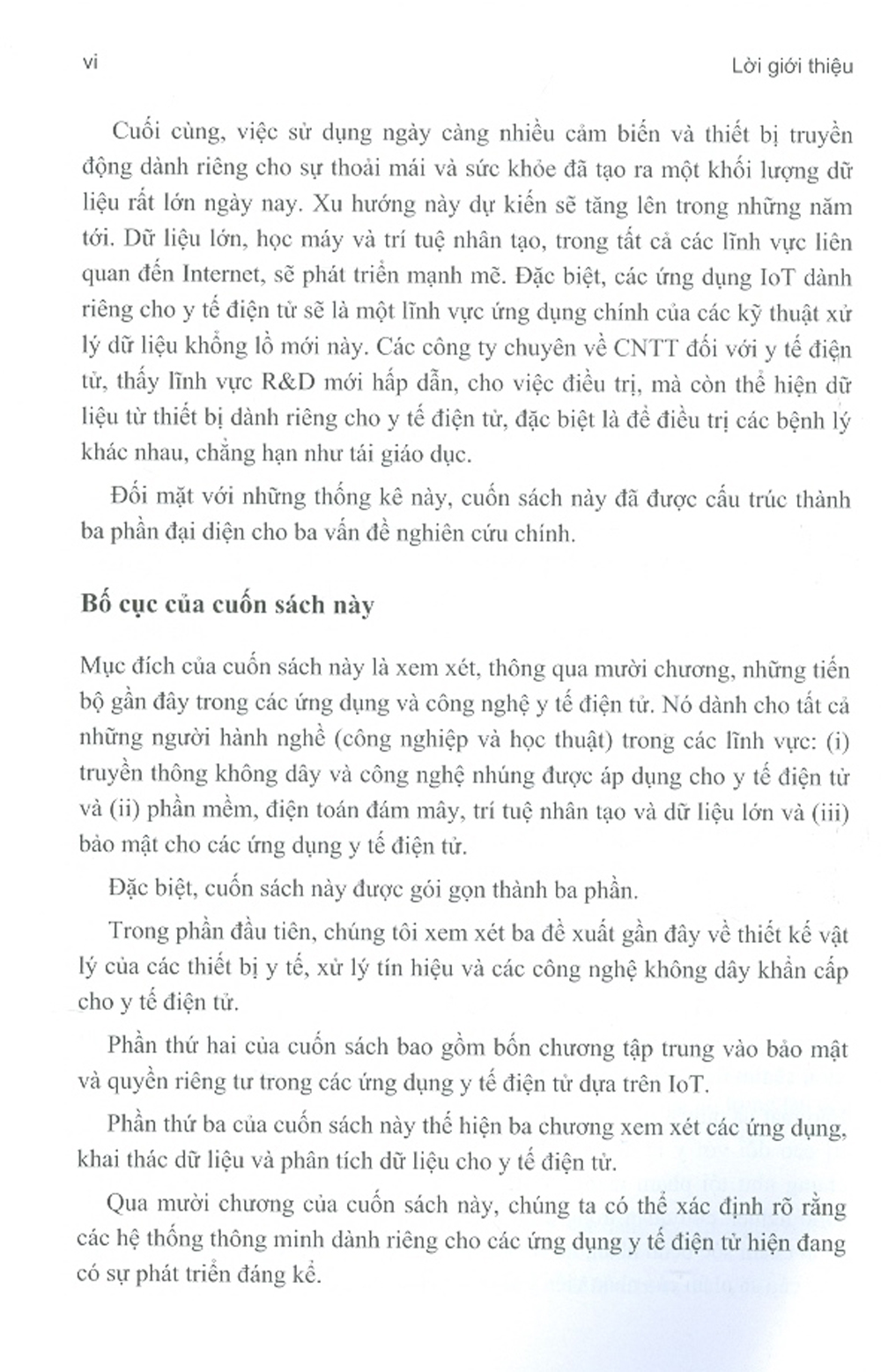Mục đích của cuốn sách này là xem xét, thông qua mười chương, những tiến bộ gần đây trong các ứng dụng và công nghệ y tế điện tử. Nó dành cho tất cả những người hành nghề công nghiệp và học thuật) trong các lĩnh vực: (i) truyền thông không dây và công nghệ nhúng được áp dụng cho y tế điện tử và (ii) phần mềm, điện toán đám mây, trí tuệ nhân tạo và dữ liệu lớn và (iii) bảo mật cho các ứng dụng y tế điện tử.