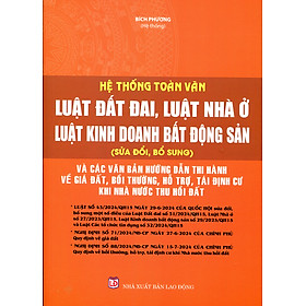 Ngày 18-01-2024, Quốc hội đã thông qua Luật Đất đai số 31/2024/QH15. Theo đó, Luật Đất đai năm 2024 có một số nội dung đáng chú ý như: quy định 32 trường hợp Nhà nước “thu hồi đất để phát triển kinh tế - xã hội vì lợi ích quốc gia, công cộng"; phải hoàn thành bố trí tái định cư trước khi thu hồi đất; bãi bỏ quy định về khung giá đất; mở rộng hạn mức nhận chuyển quyền sử dụng đất nông nghiệp của cá nhân. Luật này có hiệu lực thi hành từ ngày 01-01-2025. Ngày 27-11-2023, Quốc hội đã thông qua Luật Nhà ở số 27/2023/QH15. Theo đó, không quy định thời hạn sở hữu nhà chung cư, chỉ quy định thời hạn sử dụng nhà chung cư; mở rộng thêm 02 nhóm đối tượng được mua nhà ở xã hội bao gồm: 1) học sinh, sinh viên đại học, học viện, cao đẳng, dạy nghề, trường chuyên biệt, và 2) học sinh trường dân tộc nội trú công lập, doanh nghiệp, hợp tác xã, liên hiệp hợp tác xã trong khu công nghiệp. Luật có hiệu lực từ ngày 01-01-2025. Ngày 28-11-2023, Quốc hội đã thông qua Luật Kinh doanh bất động sản số 29/2023/QH15. Theo đó, chủ đầu tư dự án bất động sản chỉ được thu tiền đặt cọc không quá 5% giá bán, cho thuê mua nhà ở, công trình xây dựng, phần diện tích sàn xây dựng trong công trình xây dựng từ bên đặt cọc để mua, thuê mua khi nhà ở, công trình xây dựng đã có đủ các điều kiện đưa vào kinh doanh; doanh nghiệp kinh doanh dịch vụ môi giới bất động sản chỉ cần một người có chứng chỉ hành nghề... Luật có hiệu lực từ ngày 01-01-2025. Ngày 29-6-2024, Quốc hội thông qua  Luật sửa đổi Luật Đất đai, Luật Nhà ở, Luật Kinh doanh bất động sản và Luật Các tổ chức tín dụng , có hiệu lực từ ngày 01-8-2024. Bên cạnh đó, nhiều văn bản quy định về bồi thường, hỗ trợ, tái định cư khi Nhà nước thu hồi đất và quy định về giá đất cũng được Chính phủ ban hành như: Nghị định 88/2024/NĐ-CP ngày 15-7-2024  quy định về bồi thường, hỗ trợ, tái định cư khi Nhà nước thu hồi đất; Nghị định 71/2024/NĐ-CP ngày 27-6-2024 quy định về giá đất. Nhằm giúp các cơ quan, tổ chức, cá nhân hoạt động trong lĩnh vực đất đai, nhà ở, kinh doanh bất động sản và bạn đọc quan tâm đến những quy định mới nêu trên, Nhà xuất bản Lao Động phối hợp với PHÁP LUẬT SÀI GÒN HÀ NỘI xuất bản cuốn sách: HỆ THỐNG TOÀN VĂN LUẬT ĐẤT ĐAI, LUẬT NHÀ Ở, LUẬT KINH DOANH BẤT ĐỘNG SẢN (SỬA ĐỔI, BỔ SUNG) VÀ CÁC VĂN BẢN HƯỚNG DẪN THI HÀNH VỀ GIÁ ĐẤT, BỒI THƯỜNG, HỖ TRỢ, TÁI ĐỊNH CƯ KHI NHÀ NƯỚC THU HỒI ĐẤT. Cuốn sách gồm có các phần chính sau đây: Phần thứ nhất: Luật Đất đai của Quốc hội, số 31/2024/QH15 Phần thứ hai: Luật Nhà ở của Quốc hội, số 27/2023/QH15 Phần thứ ba: Luật Kinh doanh bất động sản của Quốc hội, số 29/2024/QH15 Phần thứ tư: Luật sửa đổi, bổ sung Luật Đất đai, Luật Nhà ở, Luật Kinh doanh bất động sản Phần thứ năm: Quy định về bồi thường, hỗ trợ, tái định cư khi Nhà nước thu hồi đất Phần thứ sáu: Quy định về giá đất Sách có độ dày gần 520 trang, giá phát hành 495.000đ/1 quyển 2 Trân trọng giới thiệu cuốn sách đến quý độc giả.