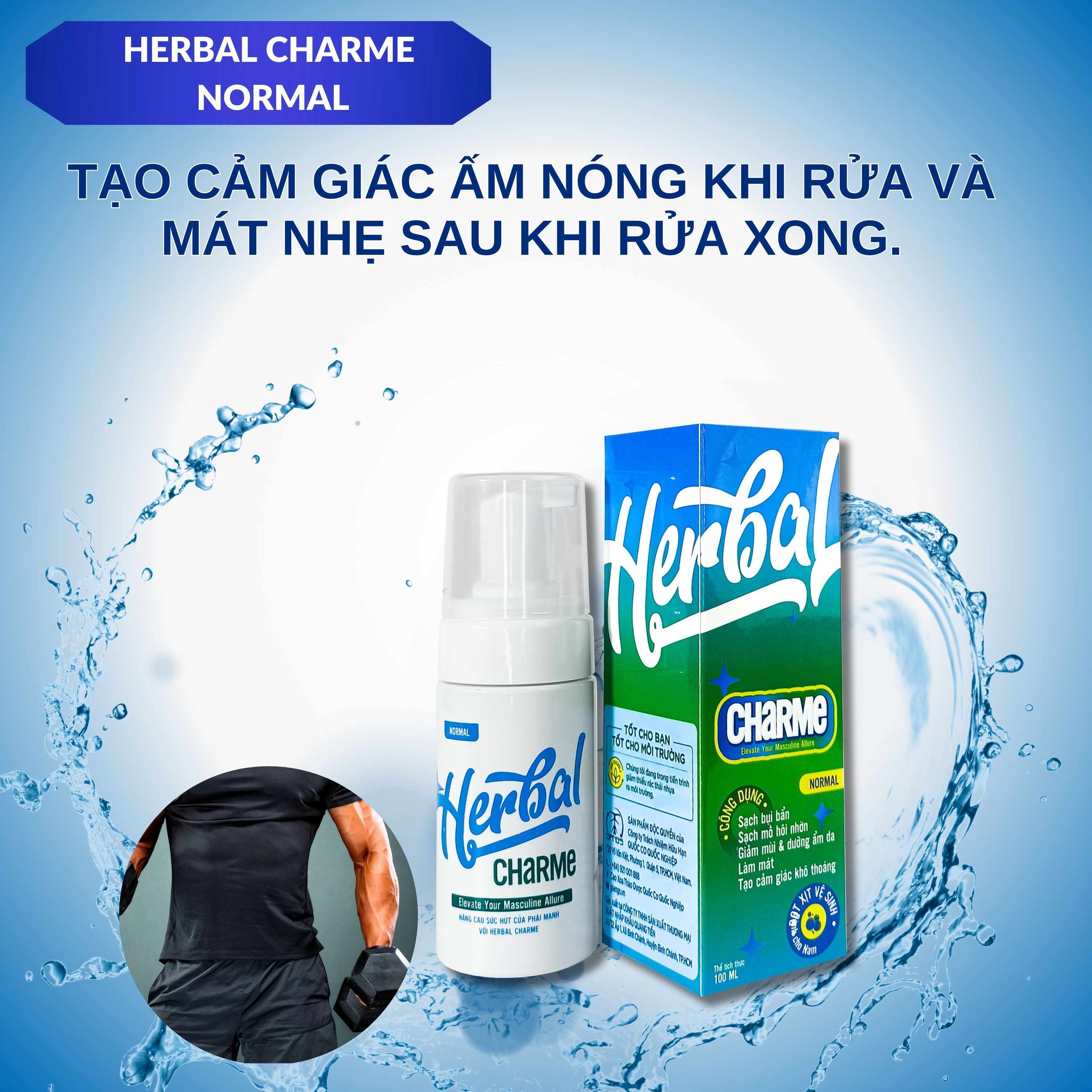 ✨HERBAL CHARME (NORMAL) Dung Dịch Vệ Sinh Nam Giới Khử Mùi Công Nghệ Mới, Giúp Tạo Bọt Làm Sạch Sâu, Ngăn Ngừa Nấm Ngứa, Hương Thơm Nam Tính Chai 100ml