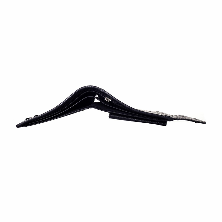 - Chất liệu: Da cá sấu thật 100%. - Kích thước: 12,5 x 10 cm (Gấp lại); 20 x 10 cm (Mở ra).