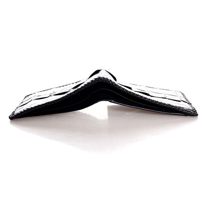 - Chất liệu: Da cá sấu thật 100%. - Kích thước: 12,5 x 10 cm (Gấp lại); 20 x 10 cm (Mở ra).
