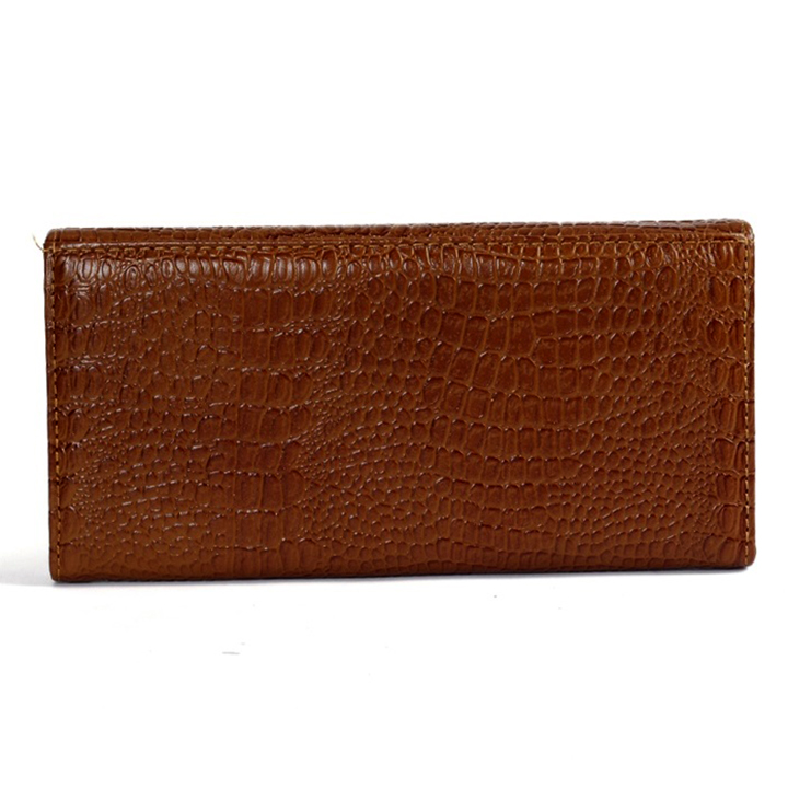 Ví/Bóp nữ Huy Hoàng da bò vân cá sấu 3 gấp màu nâu 3107