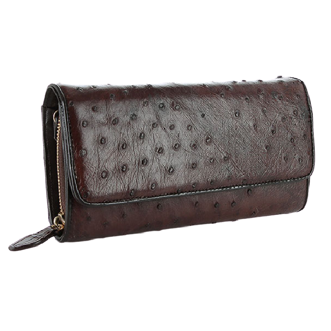 Bóp/Ví da đà điểu Huy Hoàng da bụng kiểu đứng màu nâu đất, nâu đỏ, đen, vàng bò 2408-09-10-18