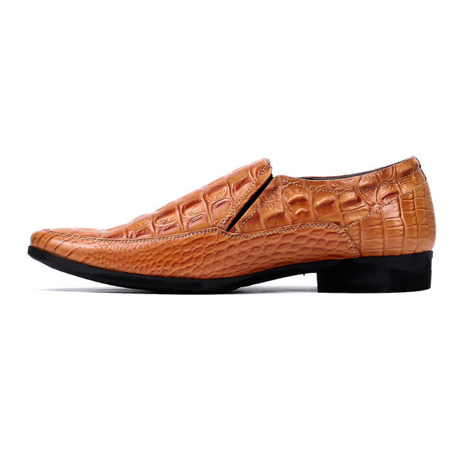 - Giày Tây Nam Huy Hoàng Vân Cá Sấu HC7130 - Vàng được làm từ chât liệu da bò thật 100% nên càng sử dụng lâu bề mặt da sẽ càng bóng đẹp tự nhiên.