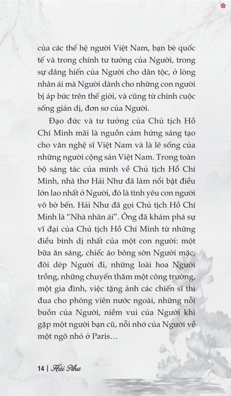 Mua tại TiktokTập thơ Hồ Chí Minh – Người tin ở con người của nhà thơ Hải Như do Nhà xuất bản Chính trị quốc gia Sự thật xuất bản có bài dài, bài ngắn, thậm chí là rất ngắn nhưng tất cả đều toát lên tư tưởng, phong cách của Chủ tịch Hồ Chí Minh - một nhà lãnh đạo thiên tài nhưng luôn gần dân, sát dân, vì dân. Tập thơ không chỉ là một tác phẩm văn học mà còn là tài liệu hữu ích cho việc giáo dục tư tưởng, đạo đức, phong cách Hồ Chí Minh.