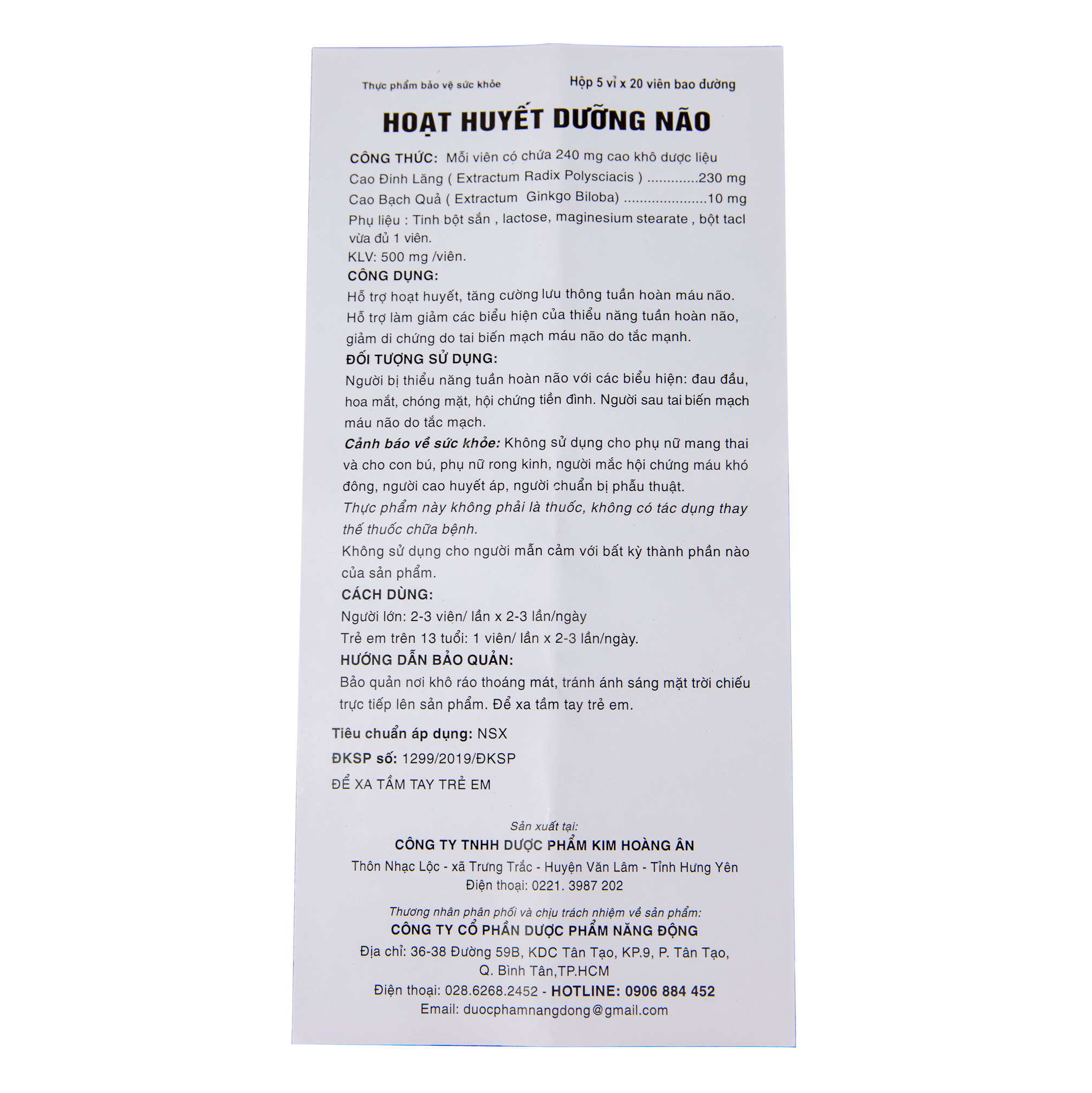 HOẠT HUYẾT DƯỠNG NÃO - NĂNG ĐỘNG - TĂNG CƯỜNG LƯU THÔNG TUẦN HOÀN NÃO Thành phần: Cao đinh lăng…….230mg Cao bạch quả……..10mg Công dụng: Hỗ trợ hoạt huyết, tăng cường lưu thông tuần hoàn