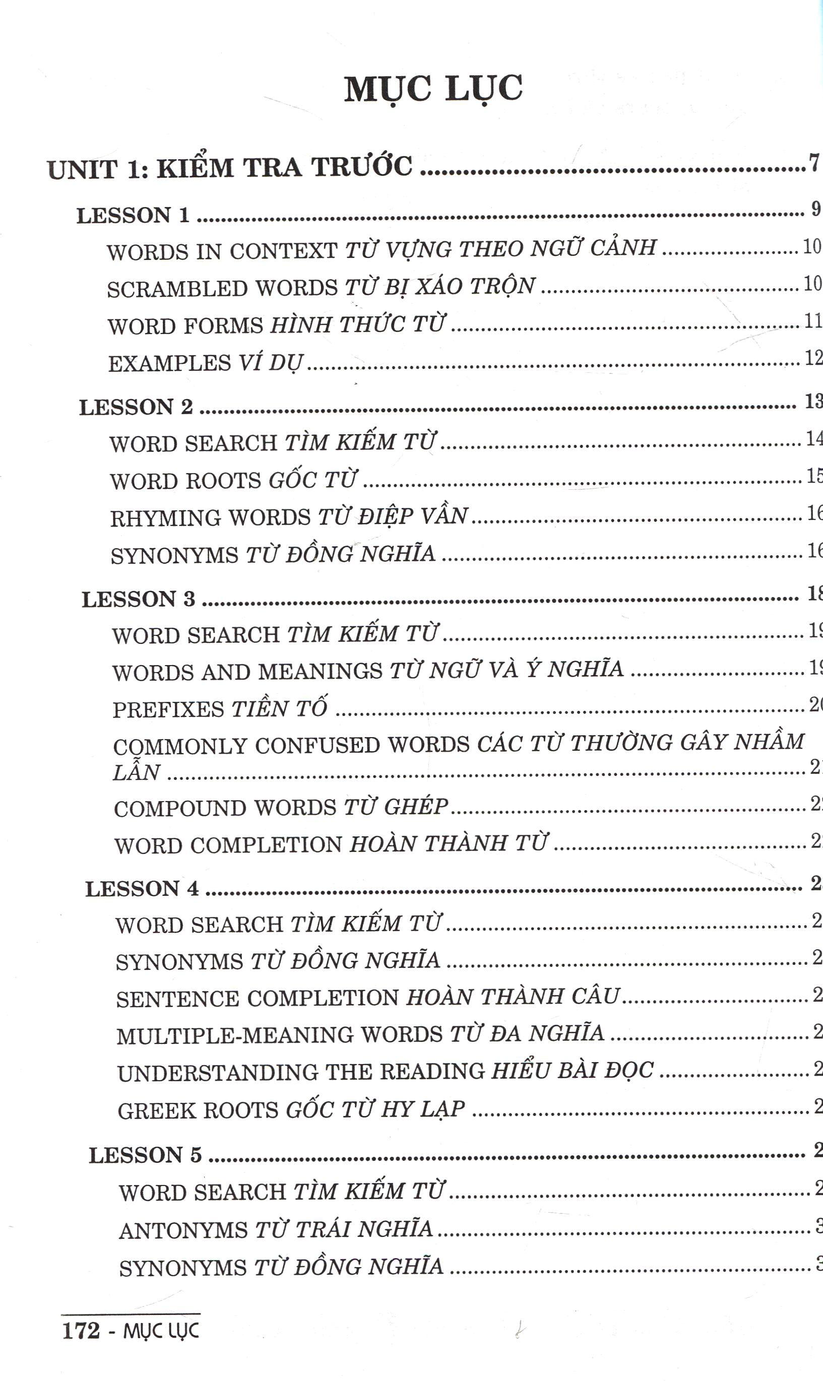 Sách gồm 15 bài học, với nhiều chủ đề đa dạng. Mỗi bài học gồm các bài tập liên quan đến việc sử dụng từ vựng một cách linh hoạt và chuẩn xác. Hệ thống