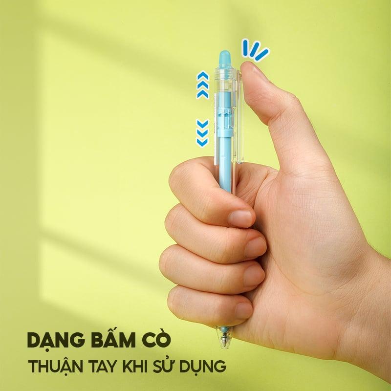 Mực gel siêu trơn: Bút được trang bị mực gel chất lượng cao, đảm bảo viết mượt mà, không bị tắc nghẽn, giúp bạn dễ dàng ghi chú hoặc viết lách mà không gặp khó