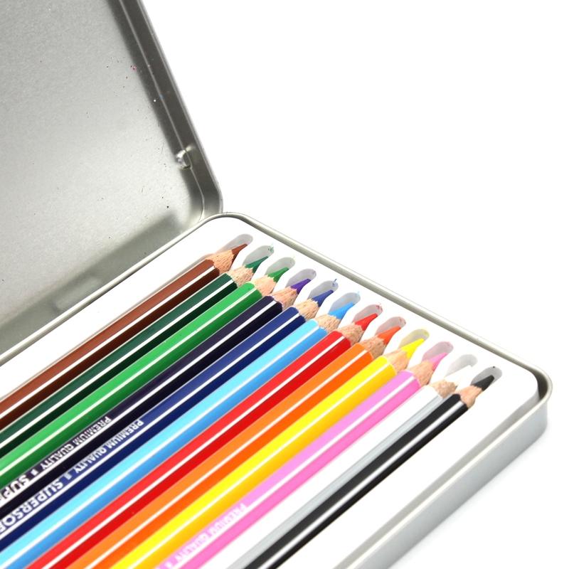 Chì màu được đựng trong hộp thiếc đẹp mắt và mang tính tiện dụng cao, giúp bạn cất bút gọn gàng vào hộp sau khi sử dụng, tránh tình trạng thất lạc.