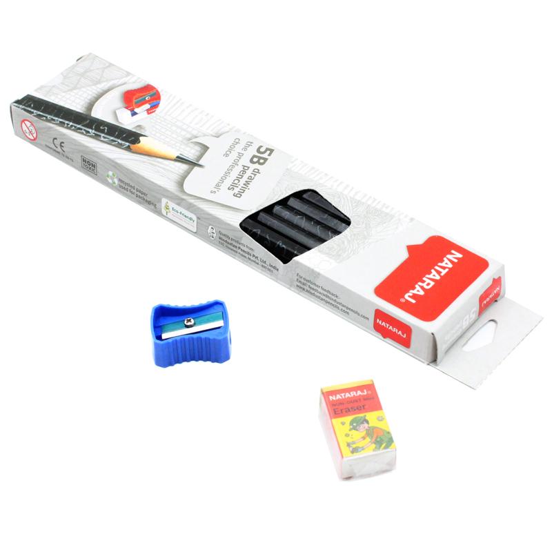 5B Drawing Pencils Set Nataraj Total 12 X Pencils , 1 X Eraser & 1 X Sharpener Shorts