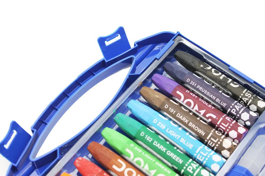 Hộp 12 Bút Sáp Dầu Hex Oil Pastels - DOMS 8414 Bút sáp dầu được làm từ nguyên liệu cao cấp, cho màu sắc chuẩn, tự nhiên, tươi sáng như thật, có độ bám giấy