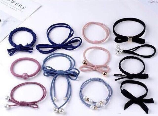 ✨Hộp 12 dây cột tóc dễ thương- Bộ dây buộc tóc nhiều chi tiết