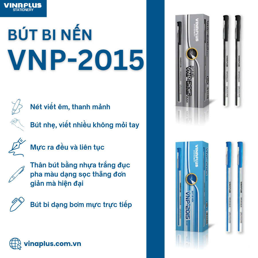 ✨Hộp 20 chiếc bút bi nến Vinaplus VNP-2015 ngòi 0,7mm 2 màu mực xanh đen cho văn phòng, học sinh, sinh viên