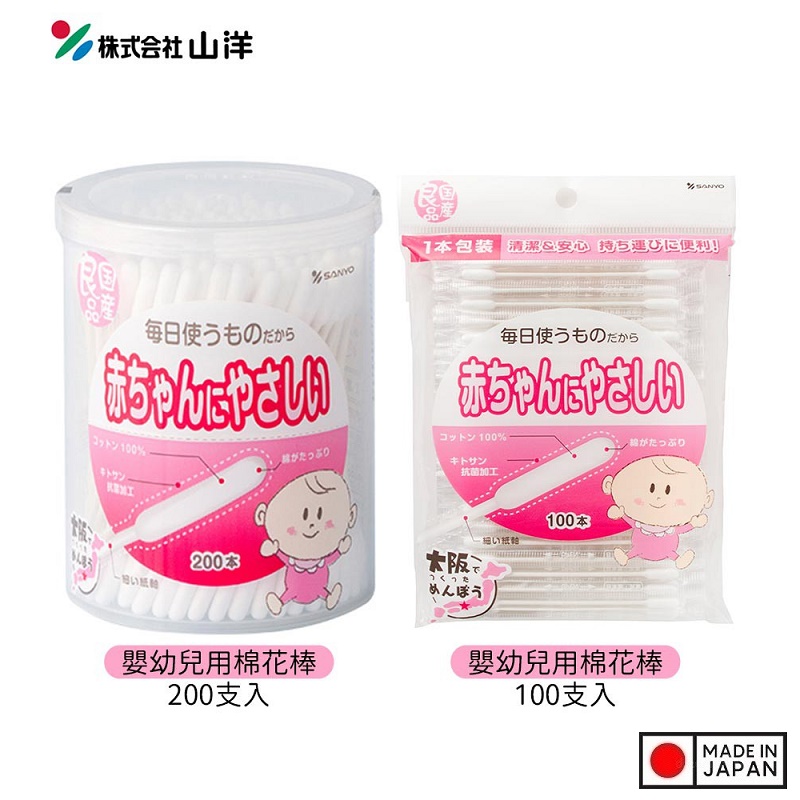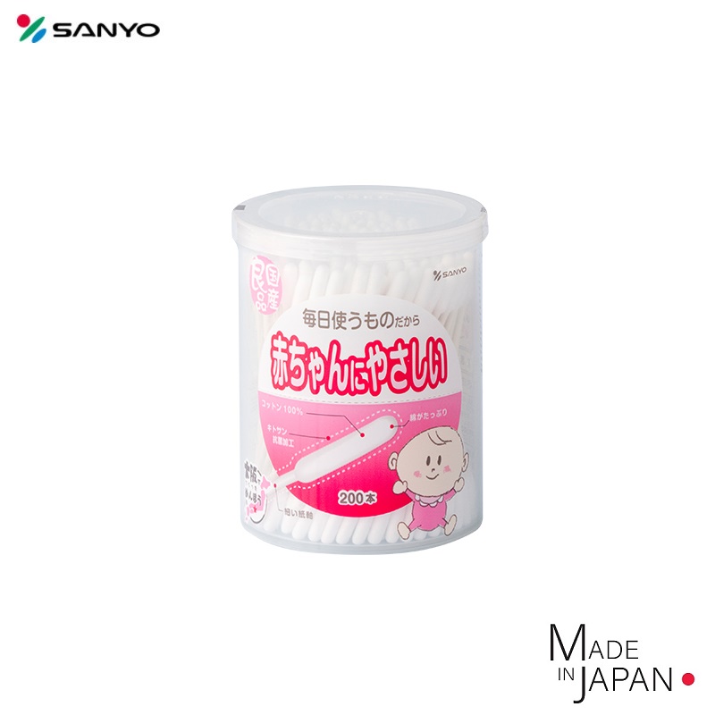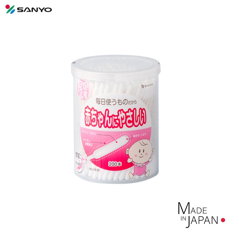 Hộp 110 chiếc tăm bông cao cấp Nhật Bản Sanyo Swab 100% Bông gòn tự nhiên kháng khuẩn an toàn cho bé Sản phẩm được nhập khẩu trực tiếp từ Nhật Bản Thương hiệu: Sanyo Xuất
