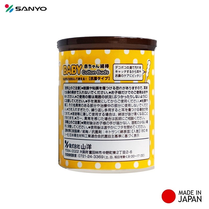 Hộp 110 chiếc tăm bông cao cấp Nhật Bản Sanyo Swab 100% Bông gòn tự nhiên kháng khuẩn an toàn cho bé Sản phẩm được nhập khẩu trực tiếp từ Nhật Bản Thương hiệu: Sanyo Xuất