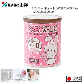 HỘP 250 TĂM BÔNG NGOÁY TAI KHÁNG KHUẨN CHO BÉ HÌNH THỎ SANYO - HÀNG NỘI ĐỊA NHẬT BẢN (Sản phẩm được nhập khẩu trực tiếp từ Nhật Bản) ■ Xuất xứ: Nhật Bản | MADE IN JAPAN