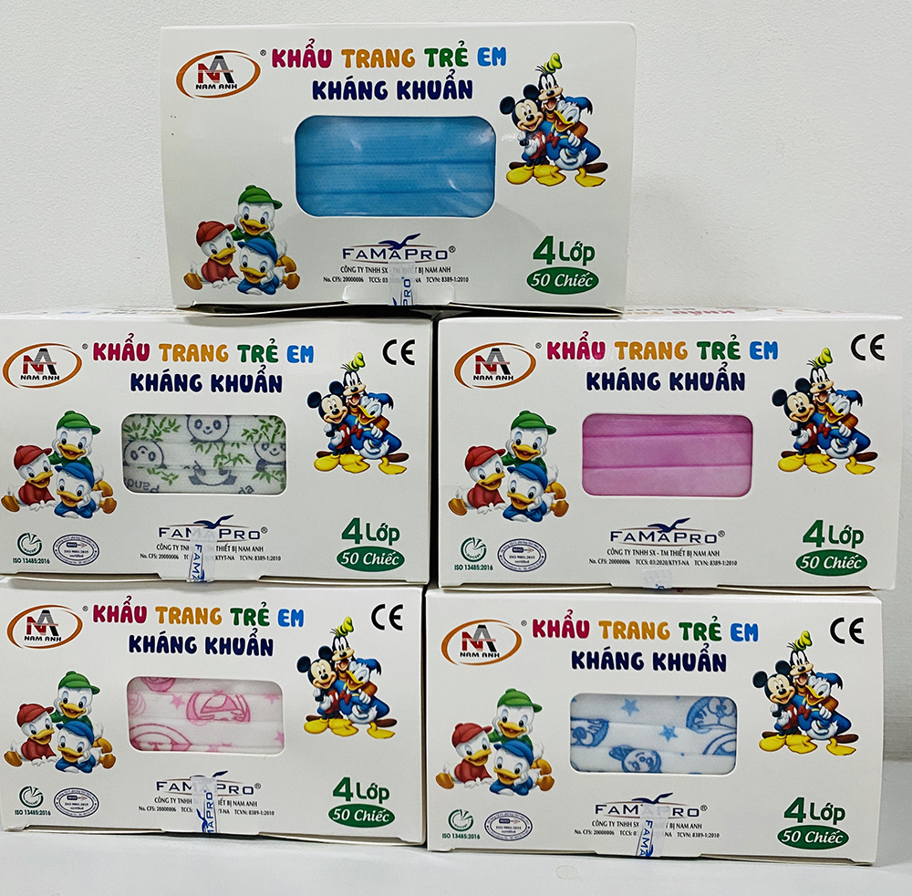 Khẩu trang y tế 4 lớp chất lượng cao, chống bụi kháng khuẩn theo tiêu chuẩn KF94 Nhà sản xuất: Công ty Duy Ngọc Đơn vị tính: chiếc Quy cách đóng gói: 300 chiếc/ thùng
