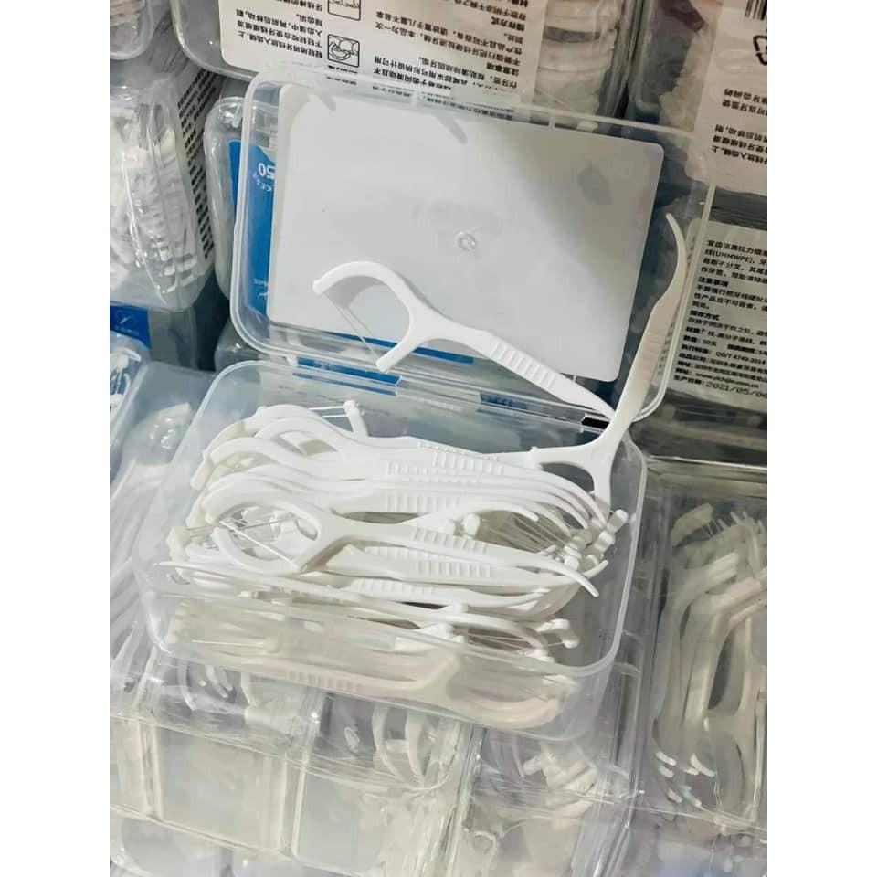 Tăm chỉ nha khoa xỉa răng dễ dàng, tăm nhựa chỉ hộp 50 chiếc