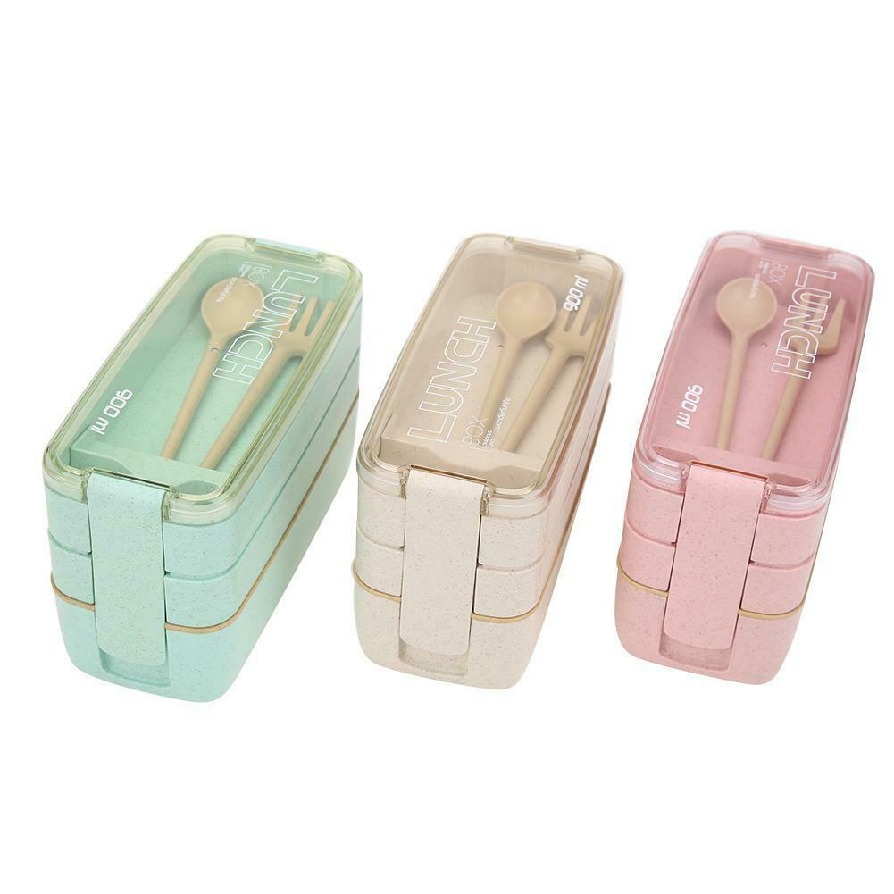 ✨Hộp Cơm 3 Tầng Lúa Mạch Lunch Box + Tặng Kèm Muỗng, Nĩa