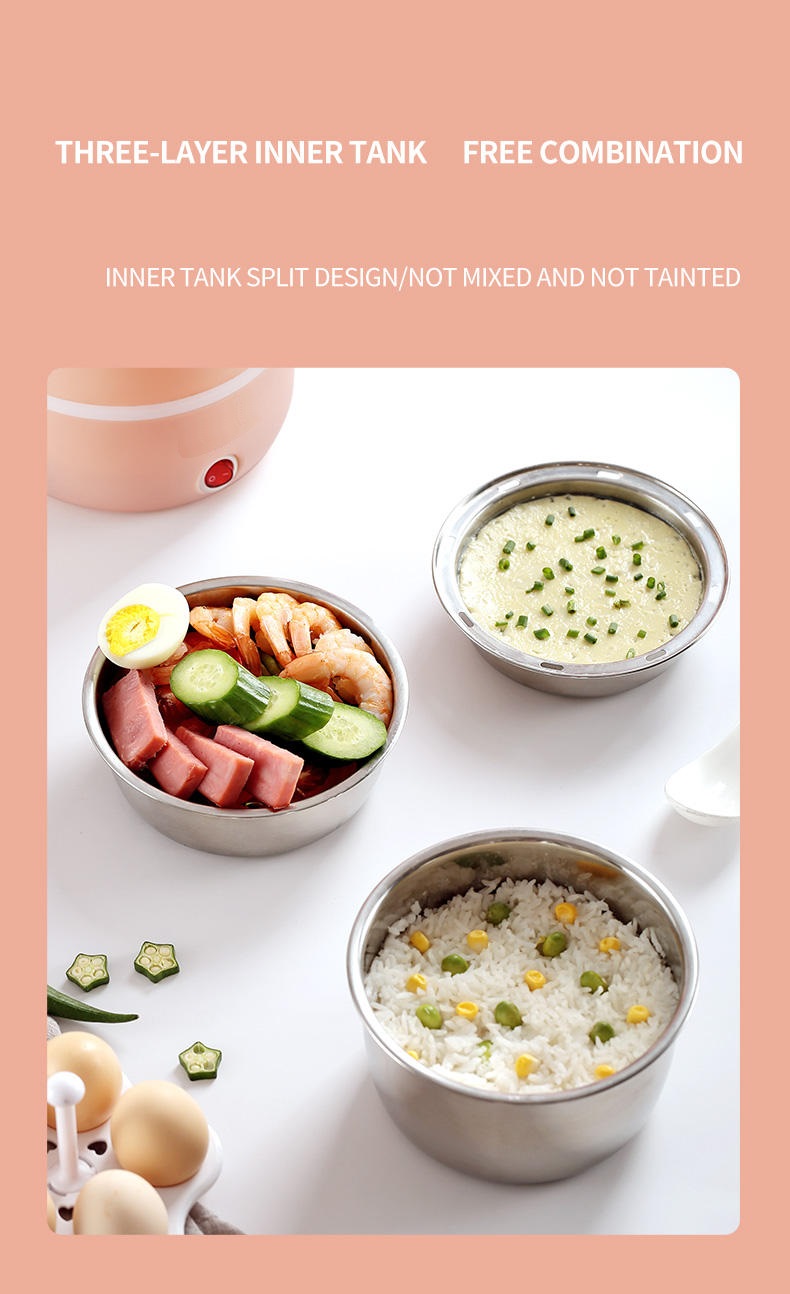 Hộp Cơm Điện Cặp Lồng Điện Hâm Cơm Tự Động 3 Tầng PS-103 - Màu Ngẫu Nhiên - Hàng Chính Hãng: hâm nóng, nấu, hấp, luộc, tại nơi làm việc hoặc nơi không tiện dùng bếp để hâm nóng thức ăn