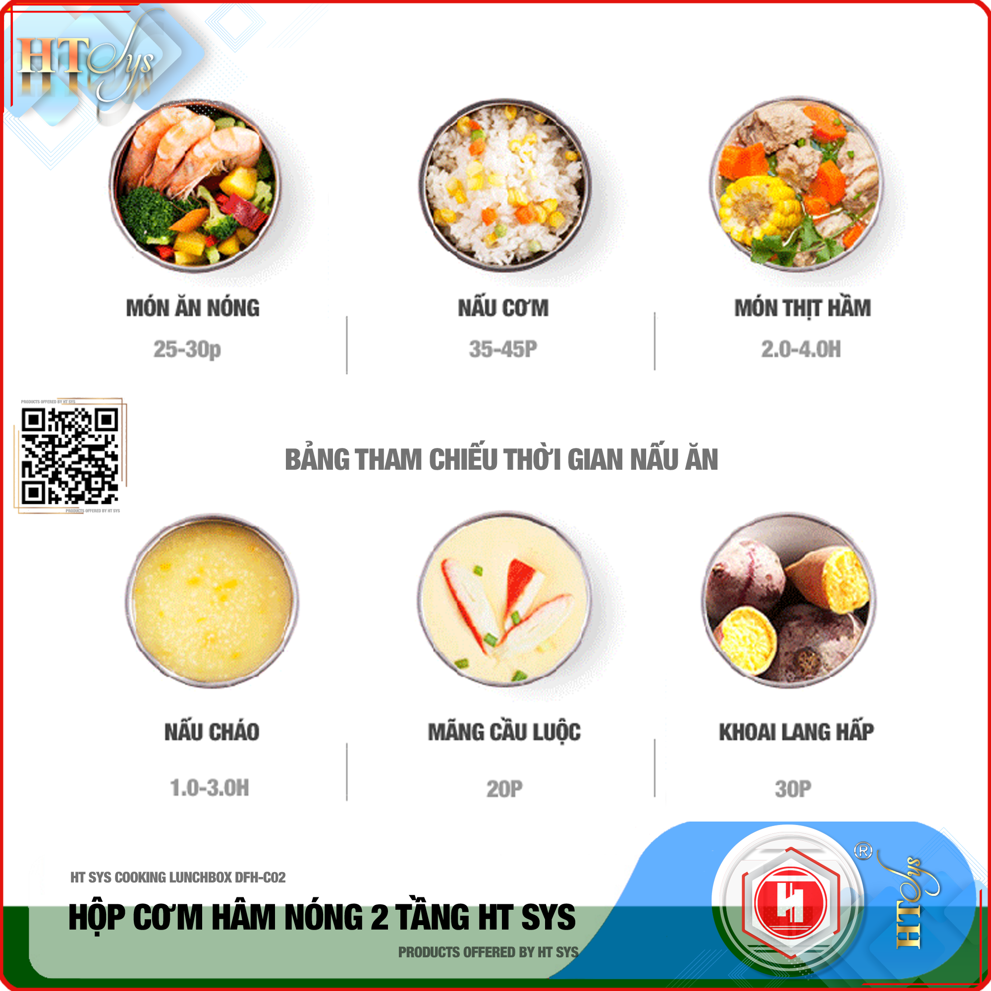 Hộp Cơm Cắm Điện Văn Phòng 2 Tầng 4 Bát Inox HT SYS Đa Năng - Chức Năng Giữ Nhiệt, Hâm Nóng Và Tự Nấu Chín Thức Ăn THÔNG TIN SẢN PHẨM: