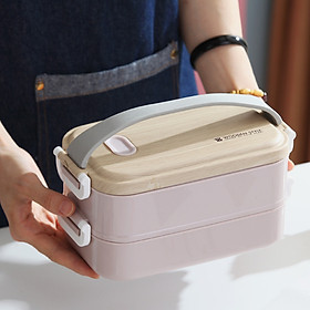 Hộp 2 lớp: 1 khay nhựa và 1 khay INOX, giúp cách nhiệt tốt hơn.