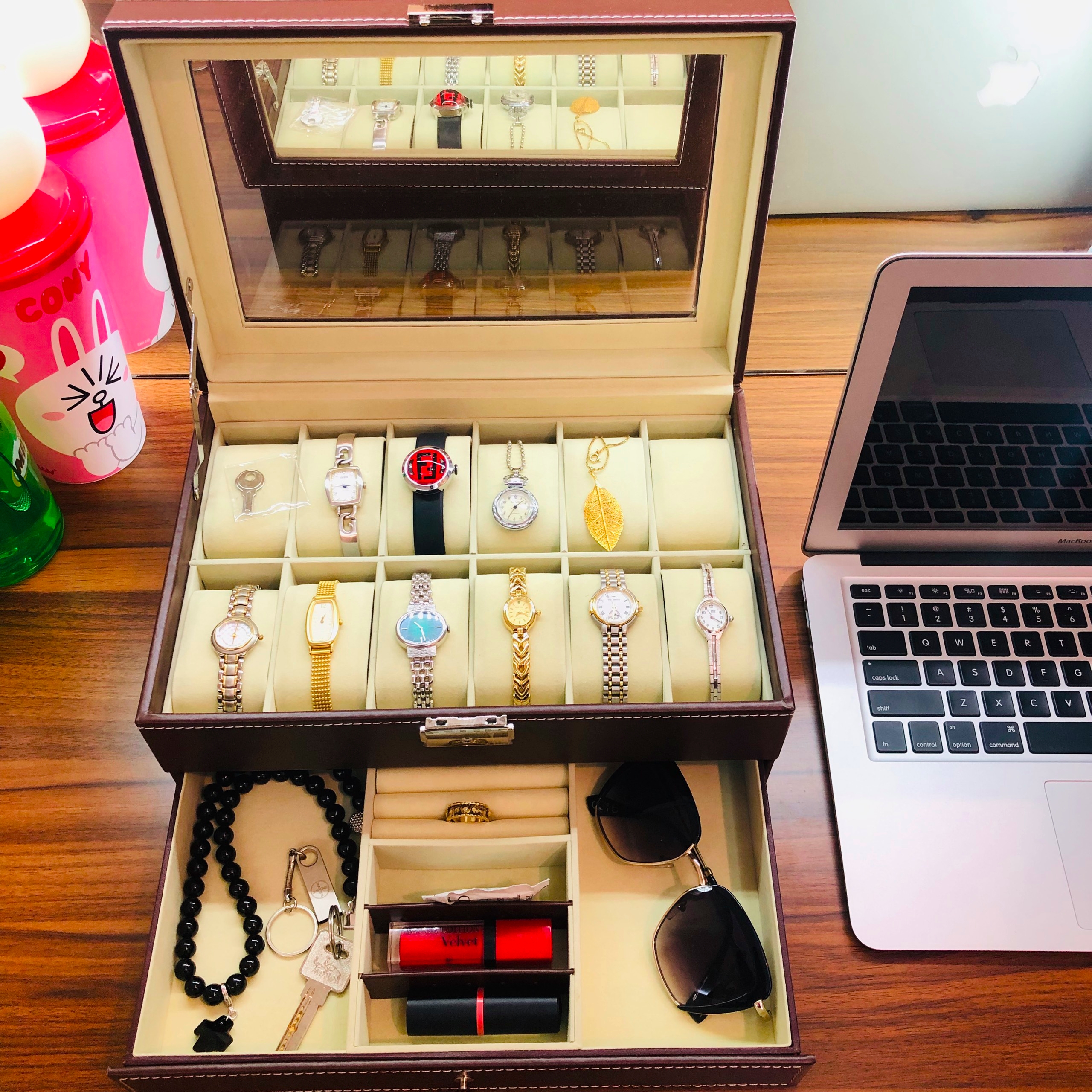 Bạn có khoảng 6-8 chiếc đồng hồ và phụ kiện trang sức như nhẫn, vòng ùng với đó bạn thích hộp có mặt kính để nhìn thấy phụ kiện bên trong hộp và hộp có