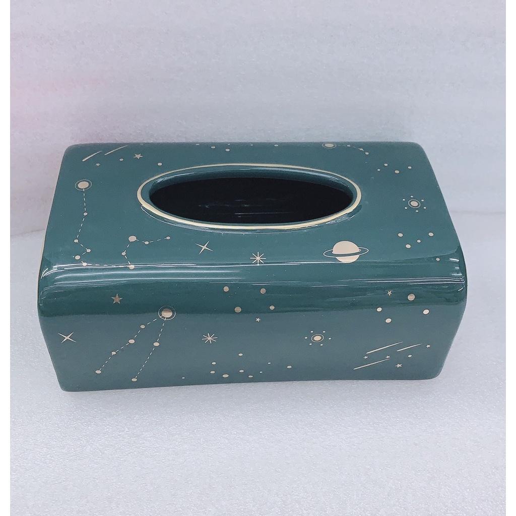 ✨HỘP ĐỰNG KHĂN GIẤY BẰNG SỨ MÀU XANH CỔ VỊT HỌA TIẾT TRĂNG SAO
