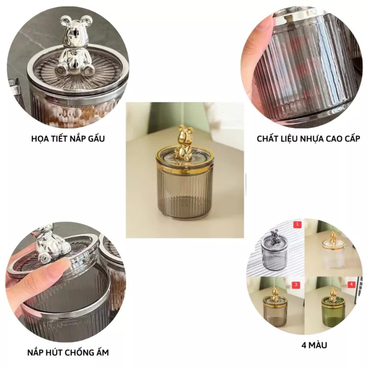 HỮ ĐỰNG TĂM SỨ LẮP ĐẬY TRONG NÚM CHÚ GẤU